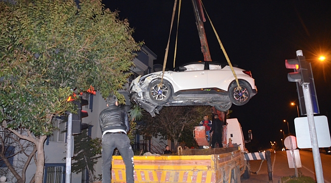 Aydın'ın Didim ilçesinde otomobil sürücüsü kırmızı ışıkta bekleyen ticari taksiye çarptı. Çarpışmanın etkisiyle otomobil sürücüsü direksiyon hakimiyetini kaybederek yolun altındaki sitenin bahçesine uçtu.
