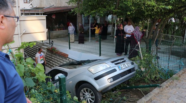 Otomobil bahçede sallanan çocuğun üzerine uçtu