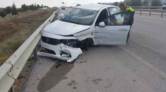 Konya'nın Kulu ilçesinde sürücüsünün kontrolünden çıkan otomobilin refüjdeki bariyerlere çarpması sonucu meydana gelen trafik kazasında araç sürücüsü ağır yaralandı.