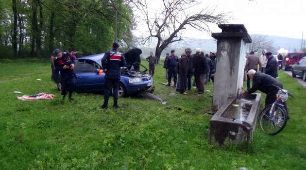 Otomobil beton çeşmeye çarparak durdu 3 kişi yaralandı