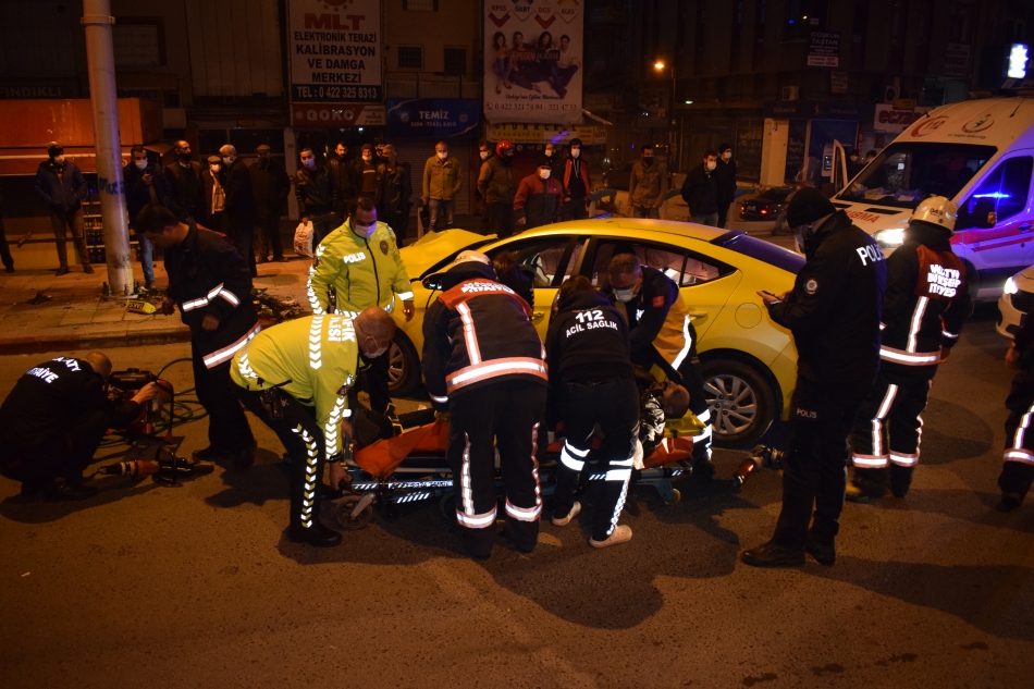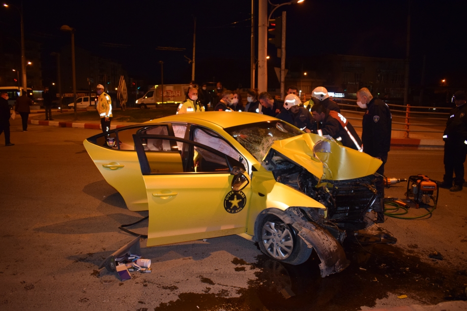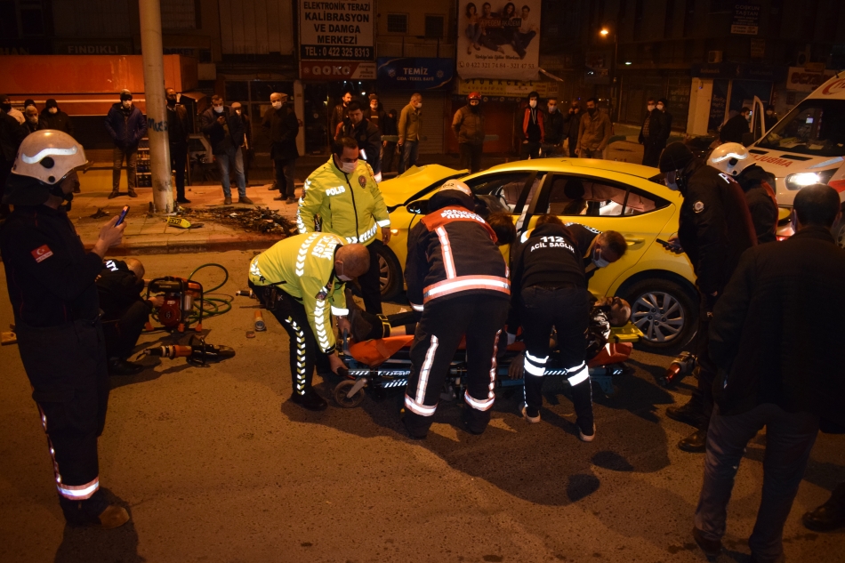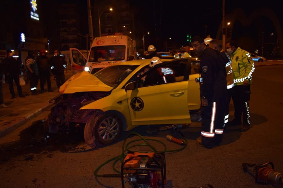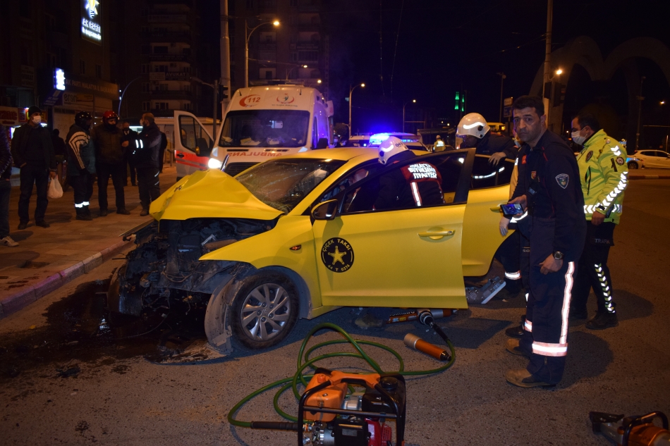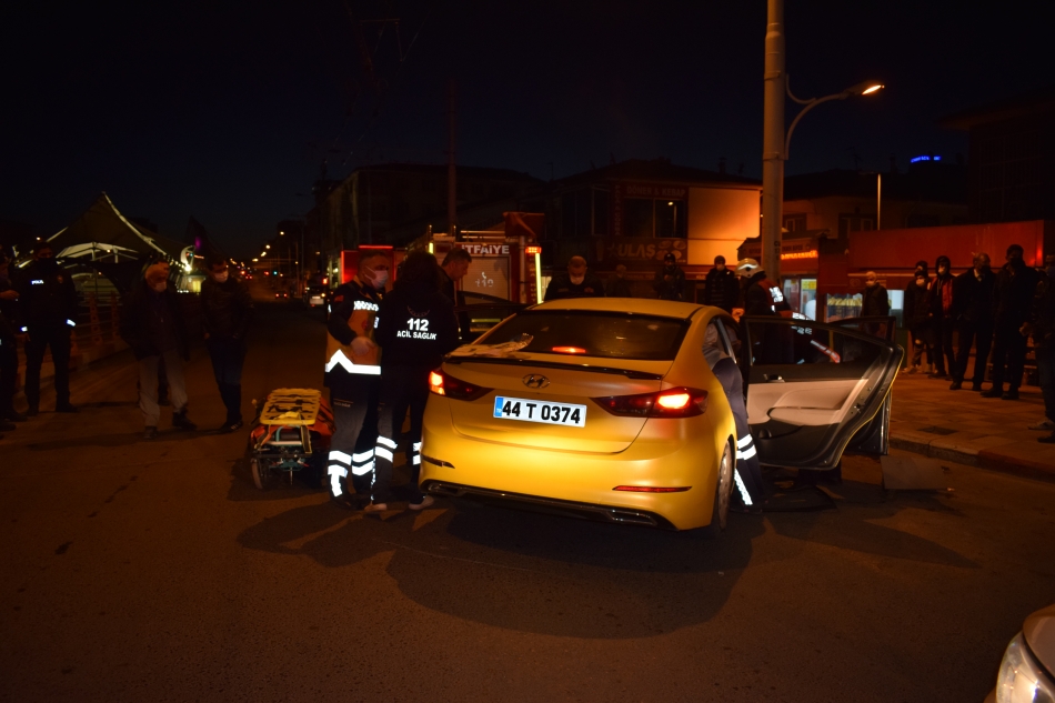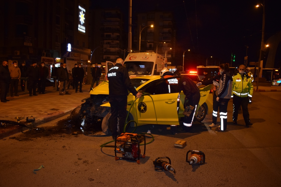 Edinilen bilgilere göre, Metin K. (37) idaresindeki Hyundai marka 44 T 0374 plakalı ticari taksi sürücüsünün direksiyon hakimiyetini kaybetmesi sonucu yol kenarındaki aydınlatma direğine çarptı. Çarpmanın şiddeti ile araç geri geri 3-4 metre savrulurken, sürücü araç içerisinde sıkıştı.