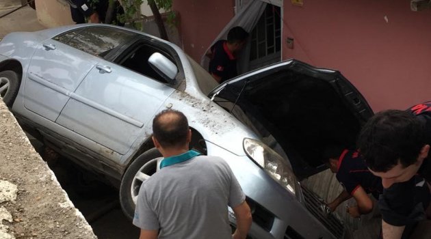 Otomobil evin bahçesine uçtu