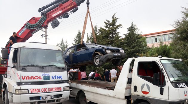 Isparta’da sürücüsünün kontrolünden çıkan otomobil, okul bahçesine uçtu.