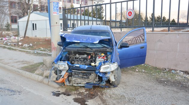 Otomobil, önce duvara sonra direğe çarptı: 2 yaralı