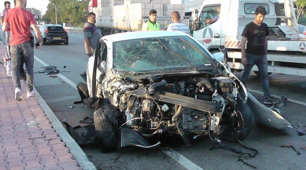 Otomobil önce iki araca sonra direğe çarptı: 4 yaralı
