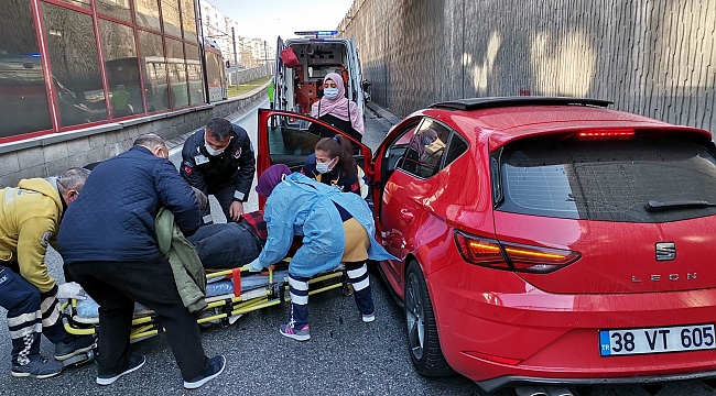 Edinilen bilgiye göre Sivas Caddesi Büyükşehir Tramway Durağı yanında meydana gelen kazada M.V.K.'nin (30) sürücüsü olduğu 38 VT 605 plakalı Seat marka otomobil, 38 AB 089 plakalı halk otobüsüne arkadan çarptı. Kazanın ardından olay yerine polis ve sağlık ekipleri sevk edildi. Otomobil sürücüsü, sıkıştığı yerden ekiplerce çıkarılırken, cadde bir süre trafiğe kapatıldı. M.V.K., ambulansla hastaneye kaldırıldı.