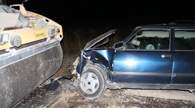 Otomobil park halindeki silindire çarptı: 5 yaralı