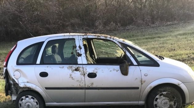 Tekirdağ'ın Malkara ilçesinde kontrolden çıkan otomobil şarampole uçtu.