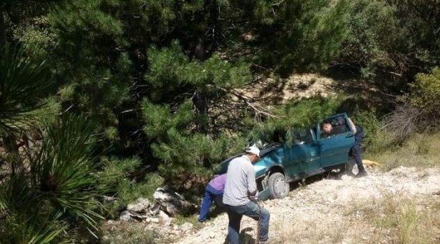 Denizli'nin Pamukkale ilçesinde kontrolden çıkan otomobil şarampole yuvarlandı.