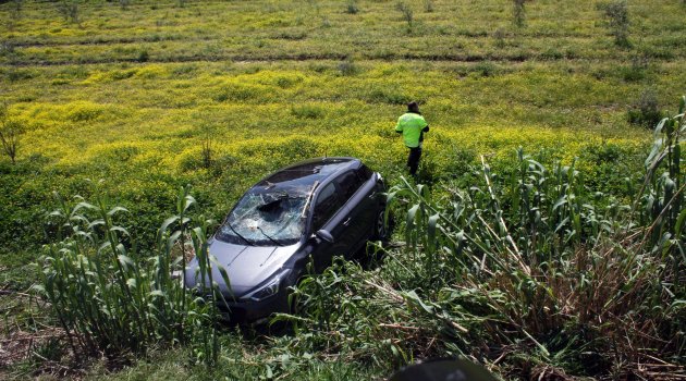 Antalya'nın Manavgat ilçesinde seyir halindeki otomobil 4 metrelik şarampole yuvarlandı.