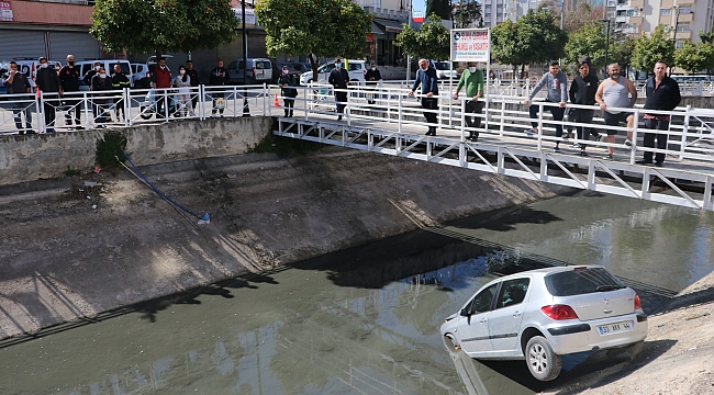 Adana’da otomobiliyle dışarı çıkan hemşire kadın sürücü, direksiyon hakimiyetini kaybedip sulama kanalına uçtu.