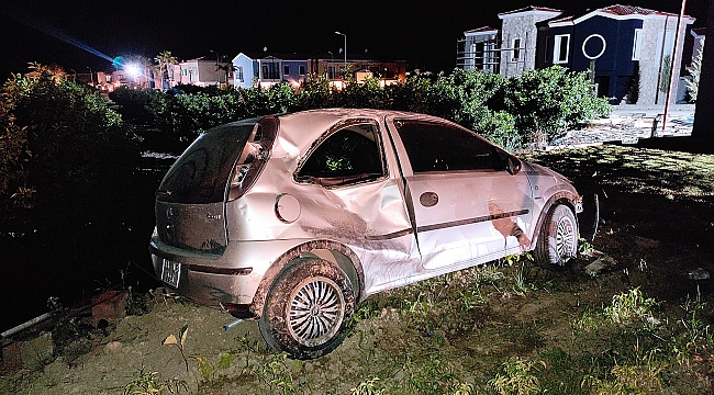 Olay, Davutlar yolu üzerinde saat 22.30 sıralarında meydana geldi. Edinilen bilgiye göre, Kuşadası'ndan Davutlar istikametine seyir halinde ilerleyen 38 LE 226 plakalı Opel otomobil sürücüsü direksiyon hakimiyetini kaybetti. Tarlaya uçan otomobil takla atarak durabildi.