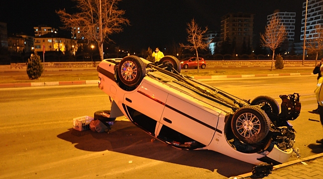 Karaman’da bir otomobil sürücüsü aniden yola fırlayan köpeğe çarpmamak için direksiyonu kırınca sinyalizasyon direğine çarparak takla attı. Kazadan sürücü yara almadan kurtuldu.