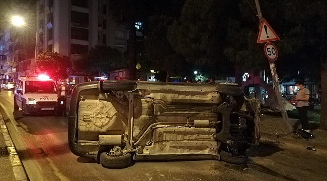 İzmir’in Buca ilçesinde sürücüsünün yoldaki emniyet şeridini son anda fark ettiği otomobil kontrolden çıkarak aydınlatma direğine çarptı. Takla atan araçtaki 1 kişi yaralandı.