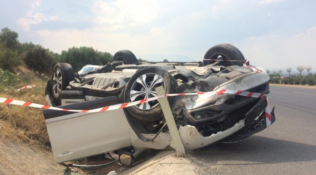 Manisa'nın Turgutlu ilçesinde seyir halindeki otomobil, sürücüsünün direksiyon hakimiyetini kaybetmesi sonucu takla attı. Kazada 2 kişi yaralandı.