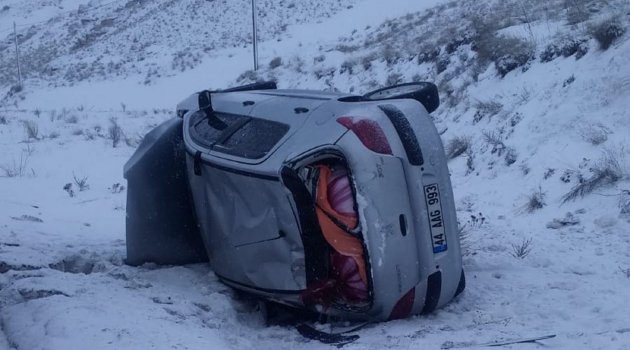 Sivas'ın Gürün ilçesinde kar yağışı nedeniyle kayganlaşan yolda otomobilin takla atması sonucu meydana gelen trafik kazasında 3 kişi yaralandı.