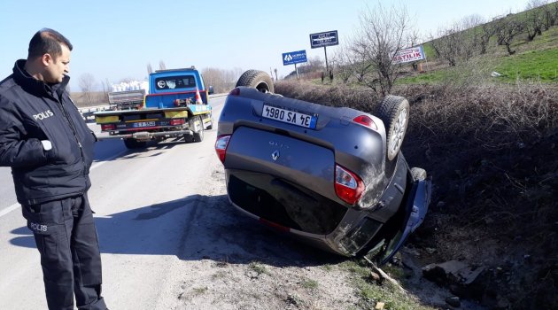 Bursa'dan İnegöl’e seyir halinde olan Zeynep Arı'nın (36) kullandığı 34 VS 0864 plakalı özel otomobil Şehitler kavşağı mevkiinde kontrolden çıktı. Savrulan otomobil yoldan çıkıp yağmur suyu kanalına düşerek ters vaziyette ancak durabildi. Can pazarının yaşandığı kazada araç sürücü ile araçta bulunan Hayri Arı (42) ve Ecrin Ecem Arı (7) yaralandı. Yaralılar olay yerine gelen sağlık ekiplerinin ilk müdahalesinin ardından hastaneye kaldırılarak tedavi altına alındı. Yaralıların sağlık durumlarının iyi olduğu öğrenildi. Öte yandan hurdaya dönen otomobil ise çekici marifetiyle kaza yerinden kaldırılarak otoparka götürüldü. Kazayla ilgili soruşturma sürüyor.