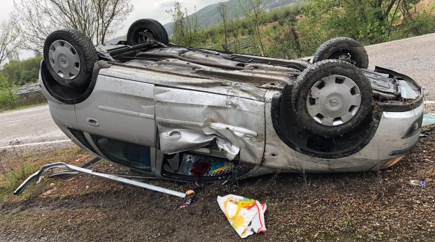 Zonguldak'ın Çaycuma ilçesinde meydana gelen trafik kazasın sürücüsünün kontrolünü kaybettiği otomobil takla attı. Kazada 3 kişi yaralandı.