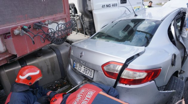 Kaza, Akyazı ilçesi D-140 karayolu TEM otoyolu kavşağında meydana geldi. Akyazı'dan Adapazarı yönüne giden ve sürücüsünün ismi öğrenilemeyen 41 NG 469 plakalı tır, otoyoldan çıkan 34 ES 3870 plakalı otomobile çarptı. Tırın sürüklediği otomobil refüjdeki direğe çarptı.