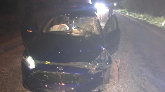 Otomobil yola çıkan ineğe çarptı: 1 yaralı