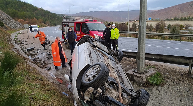 Edinilen bilgilere göre, Bilecik'ten Bozüyük istikametine seyir halindeki 42 AGL 046 plakalı otomobil sürücü Recep A., Bozüyük Çevre Yolu Bursa Kavşağına geldiği esnada havanında yağışlı olması sebebiyle aracının direksiyon hakimiyeti kaybetti.