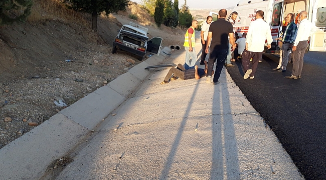 Otomobil yoldan çıkarak yol kenarındaki levhaya çarparak yağmur suyu kanalı üzerindeki tali yoldaki tümseğe çarparak takla attı.