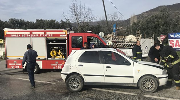 Bursa'nın Orhangazi ilçesinde otomobilin kamyonete çarpması sonucunda yaşlı adam sürücü koltuğunda sıkıştı. Otomobilin sürücüsü itfaiye ve sağlık ekiplerinin uğraşları sonucu sıkıştığı yerden çıkarılarak hastaneye kaldırıldı.