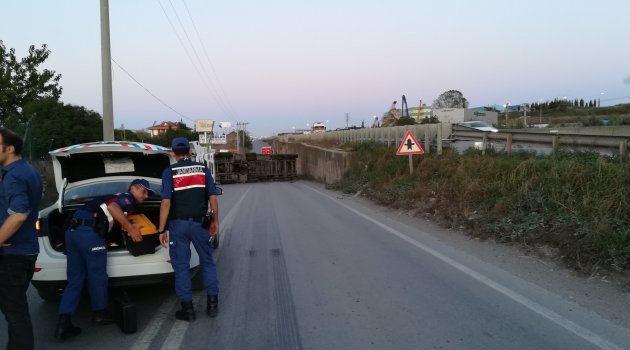 Kaza akşam saatlerinde Gebze Muallimköy Kuzey yan yolda meydana geldi. Edinilen bilgiye göre Mehmet Polat yönetimindeki 41 AAU 004 plakalı hurda yüklü tır, yokuş aşağı indiği esnada önüne çıkan A.Ç. yönetimindeki 34 PS 2384 plakalı otomobile çarpmamak için manevra yaptı. Otomobile çarpmaktan son anda kurtulan tır, yol kenarında toprak alanda bir süre sürüklendikten sonra yan yattı. Yan yatan tırdaki tonlarca hurdanın döküldüğü yol trafiğe kapanırken sürücü kazayı ufak sıyrıklarla atlattı.