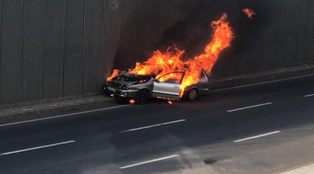Otomobilin alev alev yandığı kazada can pazarı yaşandı