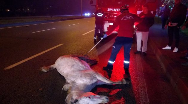 Otomobilin çarptığı at telef oldu