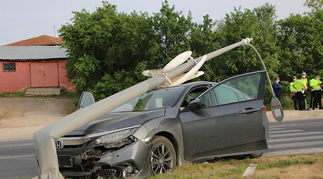 Otomobilin çarptığı direk devrildi:1 yaralı