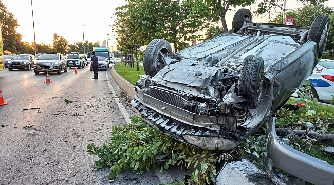 Otomobilin sıkıştırdığı araç takla attı: 6 yaralı