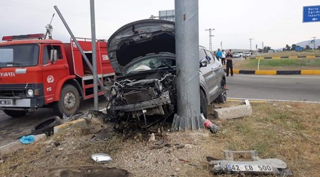 İddiaya göre, 32 LS 539 plakalı otomobille, 42 EB 500 plakalı cip kavşakta çarpışarak kaza yaptı. Kaza sonrasında hurdaya dönerek savrulan otomobilin bir kısmı refüjde kalırken, cip ise rüfüjeki direğe çarptıktan sonra durabildi.