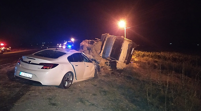 Çarpmanın etkisiyle otomobil hurdaya dönerken; yan yatan kamyonetteki saman balyaları da etrafa saçıldı. Kazada, sürücülerle birlikte kamyonette bulunan Adnan A., İbrahim Z., Rehal R., Muhammed E. ve Halid R. adlı Suriye uyruklu şahıslar da yaralandı.