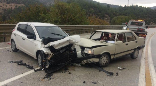 Otomobiller kafa kafaya çarpıştı 2 yaralı