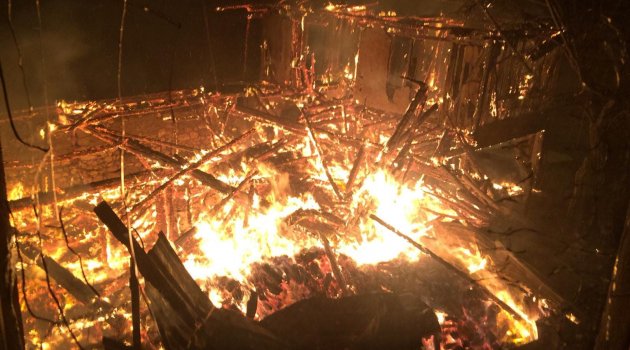 Karabük’ün Ovacık ilçesinde çıkan yangında birbirine bitişik iki ahşap kül oldu.