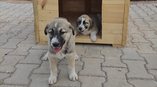 Malatya'da özel çocukların eğitim gördüğü okulda oluşturulan kulübelerde yavru köpekler yeni yaşamlarına başladılar.