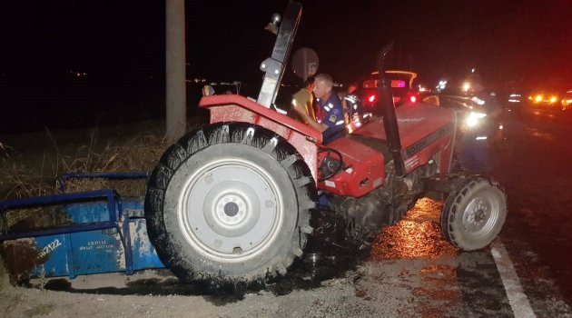 Kaza, saat 22.00 sıralarında Nazilli-Bozdoğan karayolunda meydana geldi. Edinilen bilgiye göre, Atike Bingül yönetimindeki plakasız traktör ile karşı yönden gelen Veteriner Hekim Ali İhsan Küçükebeoğlu idaresindeki 09 PB 256 plakalı otomobil çarpıştı. Otomobilin göbekten çarptığı traktör ikiye bölünerek kullanılamaz hale geldi. Kazada yaralanan her iki sürücü, ambulanslarla Nazilli Devlet Hastanesine kaldırılarak tedavi altına alındı. Kaza sonrası ulaşıma kapanan yoldaki araçların kaldırılması için çekici çağrıldı. Olay yerine gelen çekici şoförü Yasin Köselioğlu, hurdaya dönen traktörü kendilerinin bir süre önce sattığı traktöre benzetti.