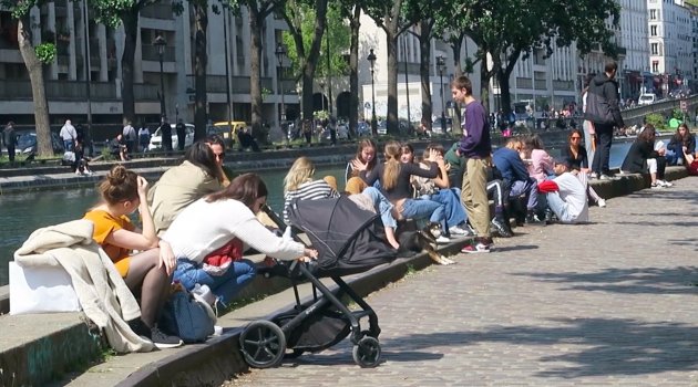 Fransa’da 11 Mayıs’ta başlayan normalleşme süreci kapsamında, korona virüsle mücadele için uygulanan kısıtlamalar kademeli olarak kaldırılıyor. Kuaför salonları, mağazalar, çiçekçiler ve kütüphanelerin yeniden açıldığı ülkede, kafe, bar, restoran, tiyatro ve sinema salonları kapalı kalmaya devam ediyor. Sokağa çıkma kısıtlamalarının kaldırıldığı ülkenin başkenti Paris’te kafe ve restoranlar kapalı olunca halk meydanlara, nehir ve kanalların çevresine akın etti. Parislilerin sosyal mesafe kurallarına uymadığı görülürken, bazı kent sakinleri ise maske takmadan sokağa çıktı.