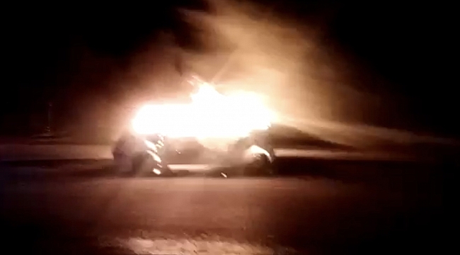 Kısa sürede söndürülen otomobil kullanılamaz hale geldi. O anlar bir vatandaş tarafından saniye saniye kayıt altına alındı.