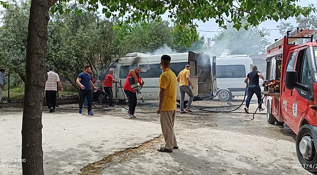 Olay yerine gelen itfaiye ekipleri yangına müdahale ederek söndürdü. Yangın sonrası minibüs kullanılmaz hale geldi.