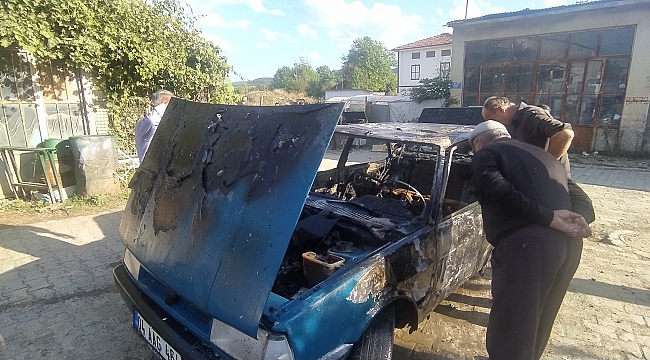 Park halindeki otomobilde yangın çıktığını fark eden esnaf ise durumu itfaiye ekiplerine bildirdi. Kısa sürede olay yerine gelen itfaiye ekipleri, yanan aracı söndürdü. Otomobil de kullanılamaz hale geldi.