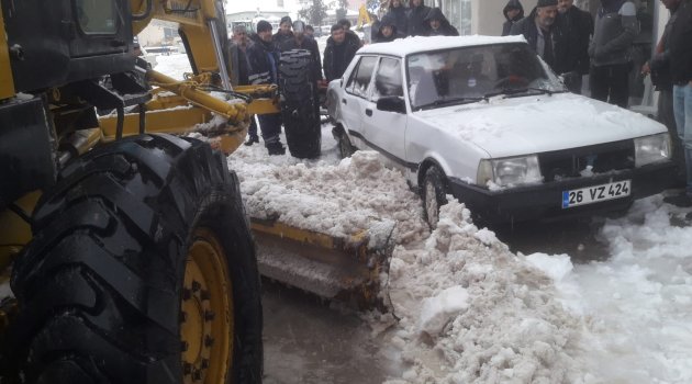 Günyüzü ilçesinde karla kapanan yolları temizleyen greyder, park halindeki otomobile çarpması sonucu araçta hasar oluştu.