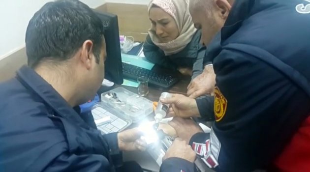 Parmağına sıkışan yüzük kesilerek çıkartıldı