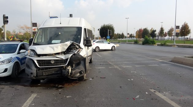 Pendik sahil yolunda ilerleyen servis aracı, kırmızı ışıkta duran otomobile arkadan hızla çarptı.