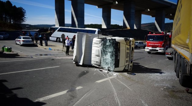 Pendik Şile Uzundere Kavşağı’nda bir tır ile kamyonet çarpıştı. Olayda 3 kişi yaralanırken, yaralılardan biri hastaneye kaldırıldı. Devrilen kamyonetteki yapışkan maddenin yola döküldüğü kazada yol kısa süreliğine trafiğe kapatıldı.