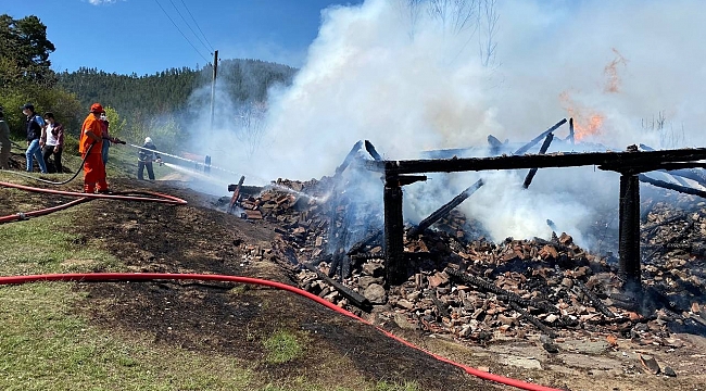 Kastamonu’nun Taşköprü ilçesinde evde bulunan piknik tüpünün patlaması sonucu çıkan yangında 1 kişi öldü, 1 ev ve samanlıkta küle döndü.
