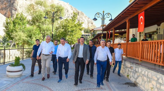Darende ilçe gezisinde ilk olarak AK Parti ilçe teşkilatını ziyaret eden heyet burada muhtarlarla bir araya geldi. Darende esnafını da ziyaret eden heyet Büyükşehir Belediyesi tarafından yapılan Aşudu Parkını da gezdiler. Birkaç gün içinde açılması planlanan park ziyaretçilerin büyük beğenisini topladı. Geziye Darende Belediye Başkanı Süleyman Eser de katıldı.