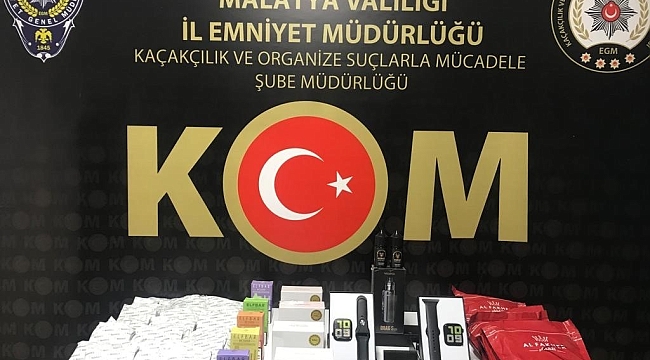 Edinilen bilgiye göre, Malatya Emniyet Müdürlüğü KOM Şube Müdürlüğü ekiplerince gümrük kaçağı ürün satışı ile mücadele çerçevesinde yapılan 2 ayrı çalışmada, 200 gram toz esrar, 10 kilogram bandrolsüz nargile tütünü, 4 adet kablosuz kulaklık, 3 adet akılı saat, 6 adet elektronik sigara ve likit ele geçirildi.
