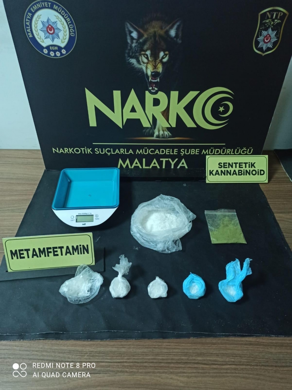 Malatya’da Narkotik Suçlarla Mücadele Şube Müdürlüğünce yapılan iki ayrı operasyonda, 5 kilo 192 gram esrar, 165 gr Metamfetamin, 6,80 gr Sentetik kannabinoid ele geçirildi. Olayla ilgili 1 kişi tutuklandı.